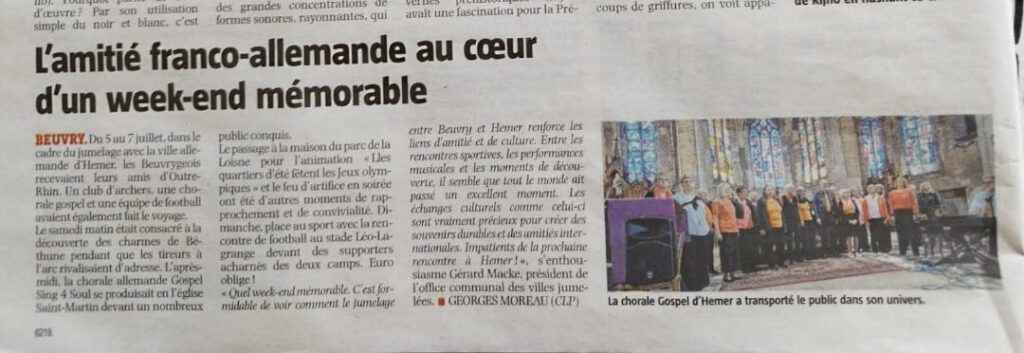 Artikel aus „Stimme des Nordens“, Region Beuvry, Frankreich vom 09.07.2024: